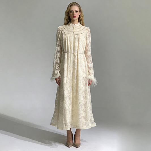 Elegant Floral Lace Mock Neck Maxi Dress