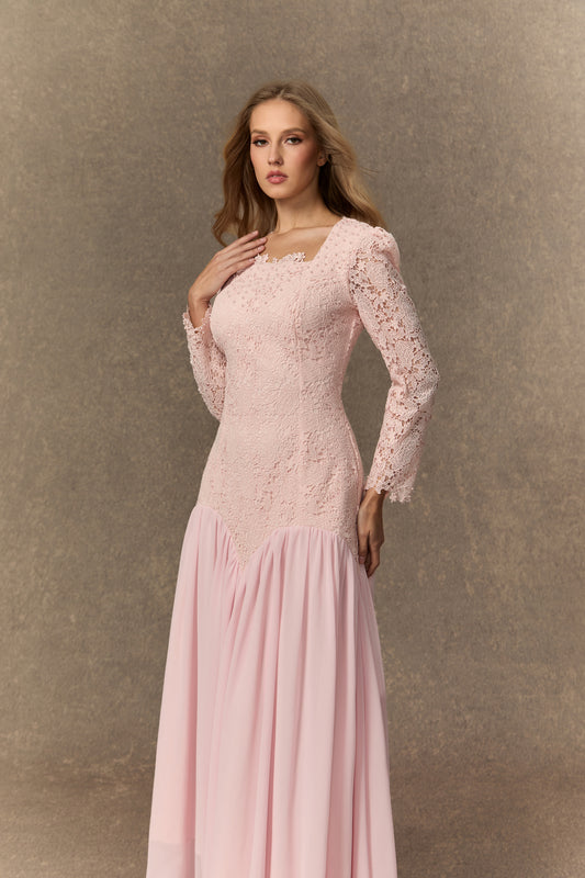 Sophisticated Pink Lace Embroidered Maxi Dress