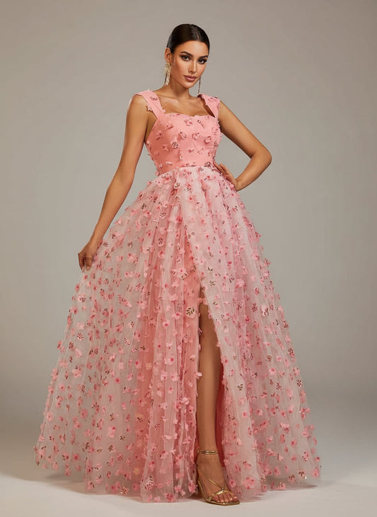 Elegant Black Floral Embroidered Strapless Maxi Dress