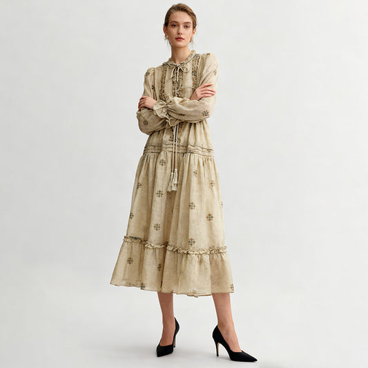 Linen French-Style Dress - Lace Trim Waist-Cinching Camisole