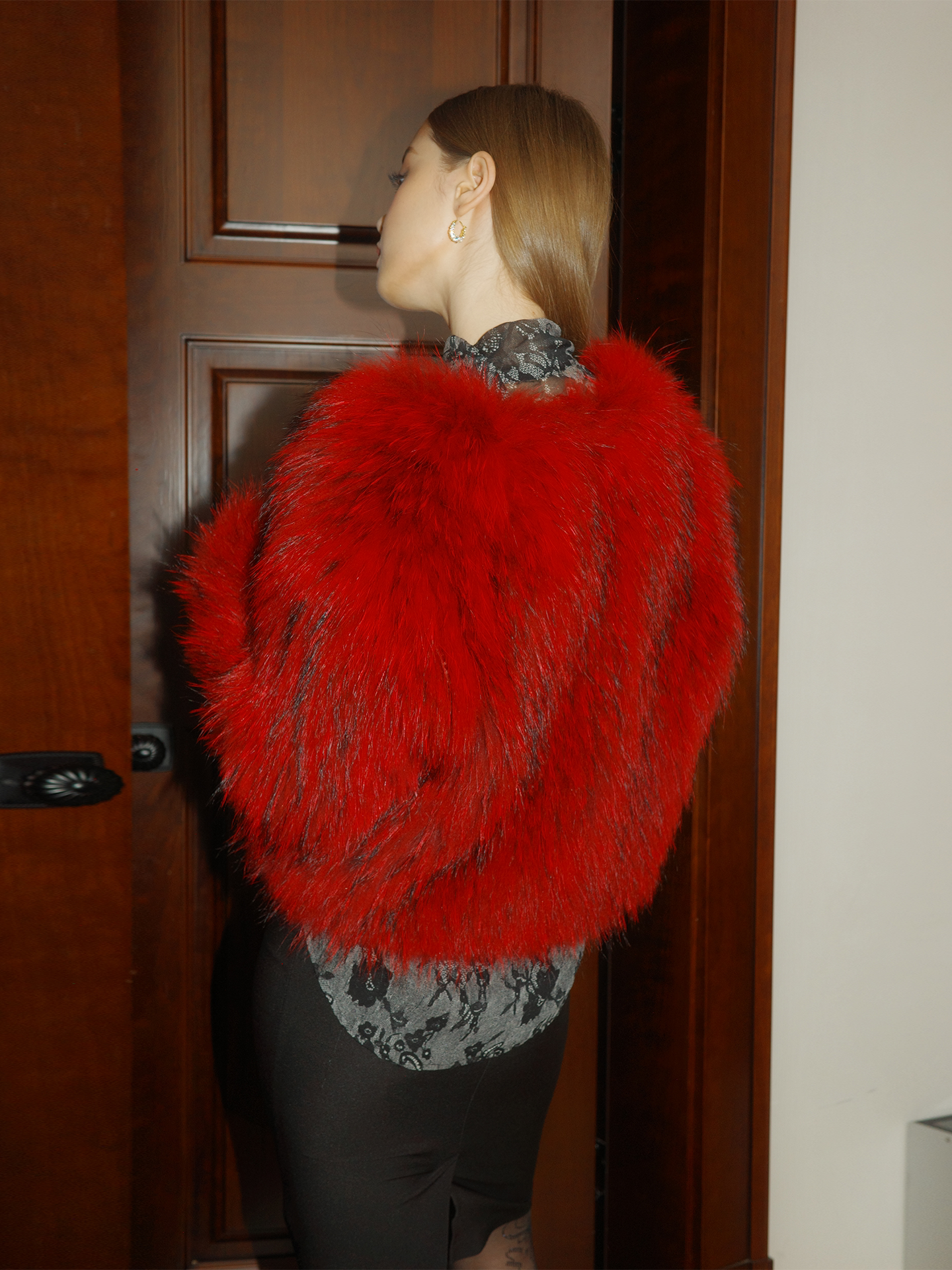 Faux Fur Coat - Red Short Design