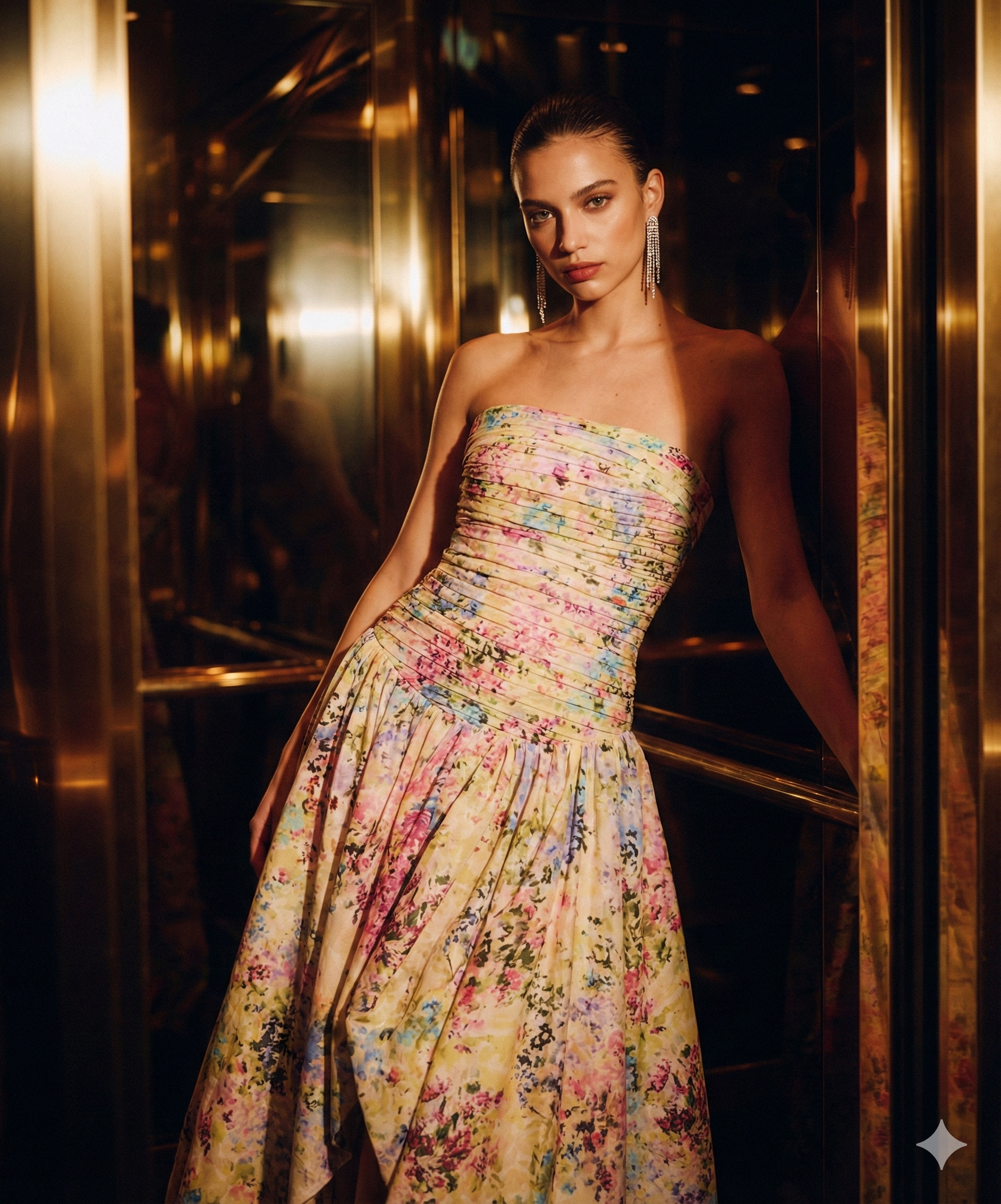 تألقي بأناقة مع فستاننا الماكسي ذي الحافة المنتفخة والمطبوع بالزهور، المصمم ليجعلكِ نجمة أي مناسبة. يتميز هذا الفستان بياقة بدون حمالات وفتحة أمامية عالية جذابة، ليجمع بين السحر الكلاسيكي والرقي العصري.