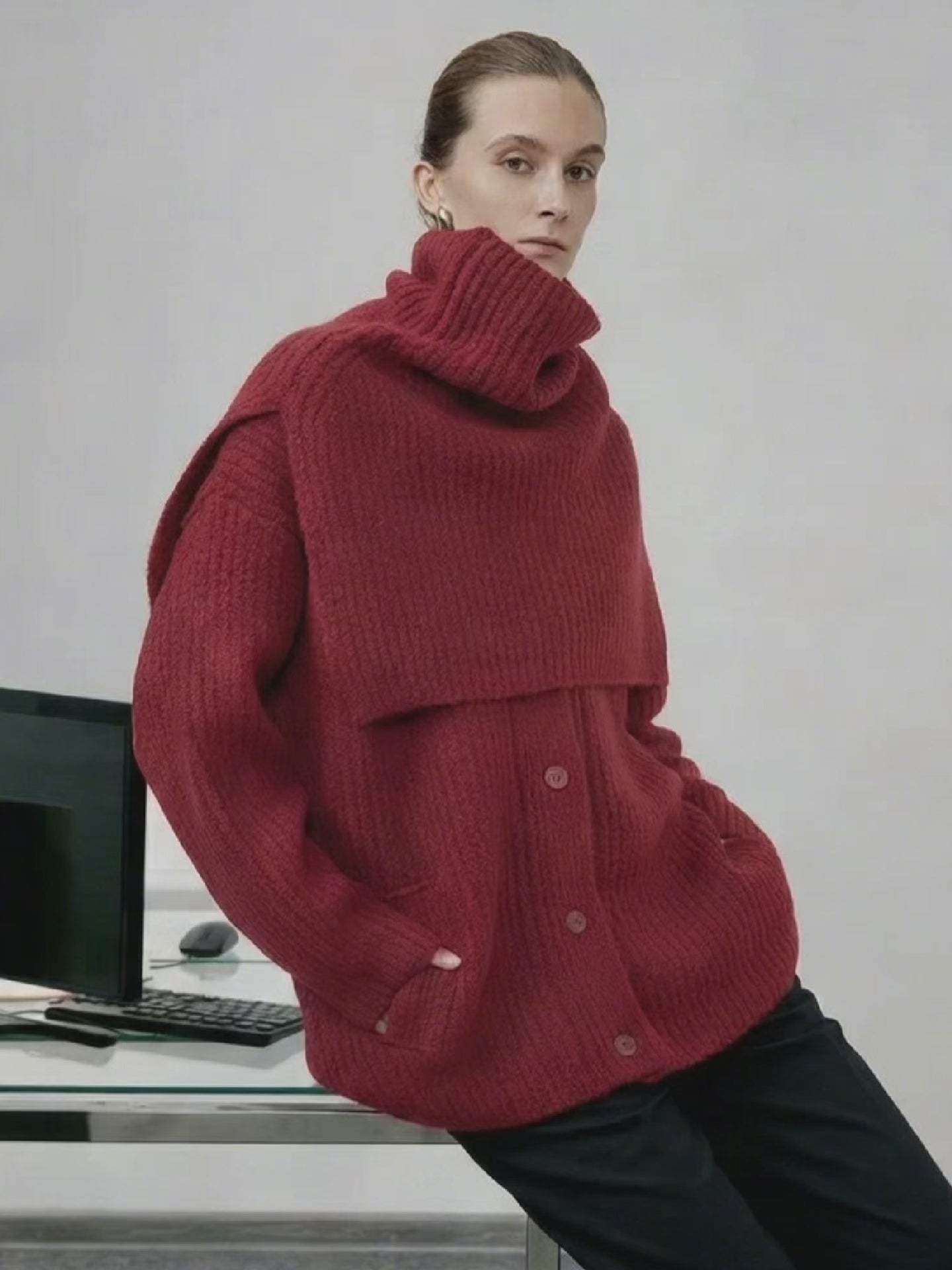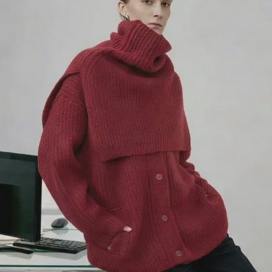 جاكيت كارديجان محبوك من مزيج الصوف - تصميم شتوي برقبة عالية