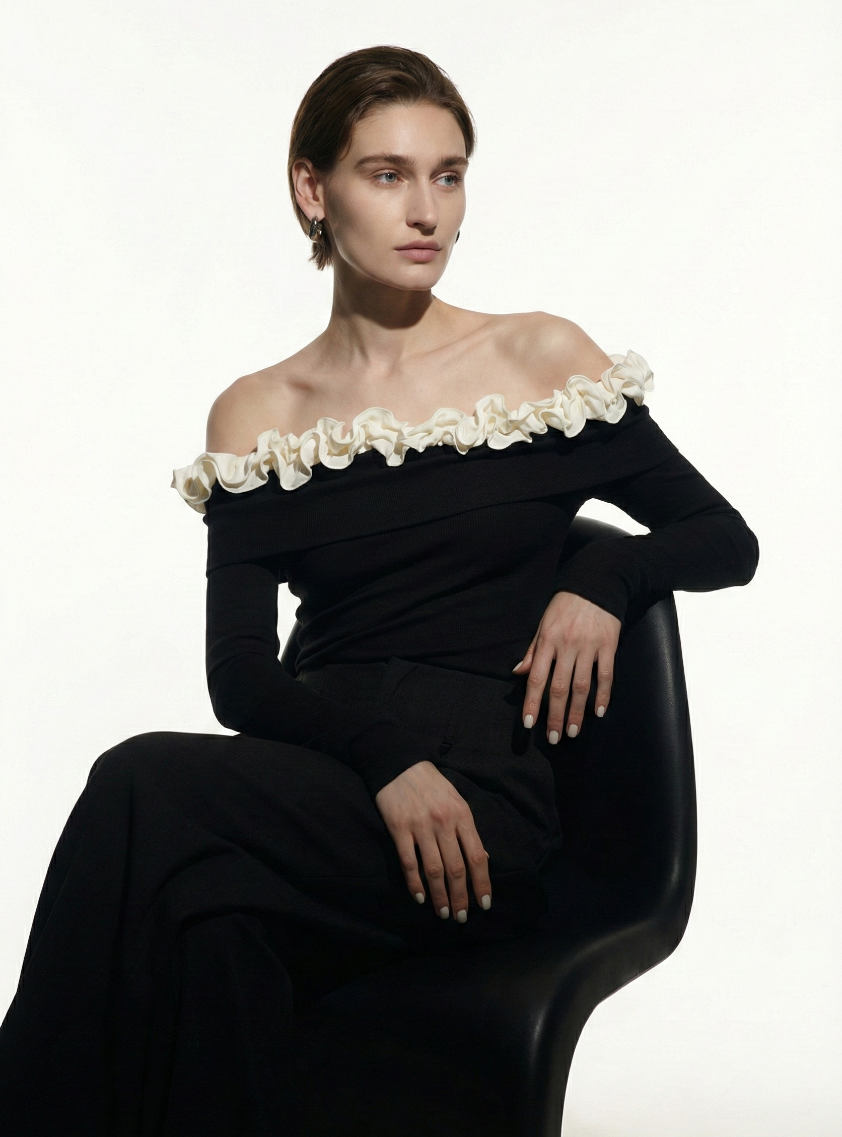 يُضفي هذا الكنزة الصوفية المحبوكة ذات الألوان المتداخلة والمزينة بالكشكشة لمسة أنيقة على إطلالتك الكاجوال، بتصميمها المكشوف الأكتاف، مما يجعلها مثالية لإضافة لمسة من الرقي إلى خزانة ملابسك الكاجوال. مصنوعة من مواد ناعمة، وتتميز بأكمام طويلة وقصة ضيقة، مما يجعلها مناسبة للمناسبات المريحة والأنيقة على حد سواء.