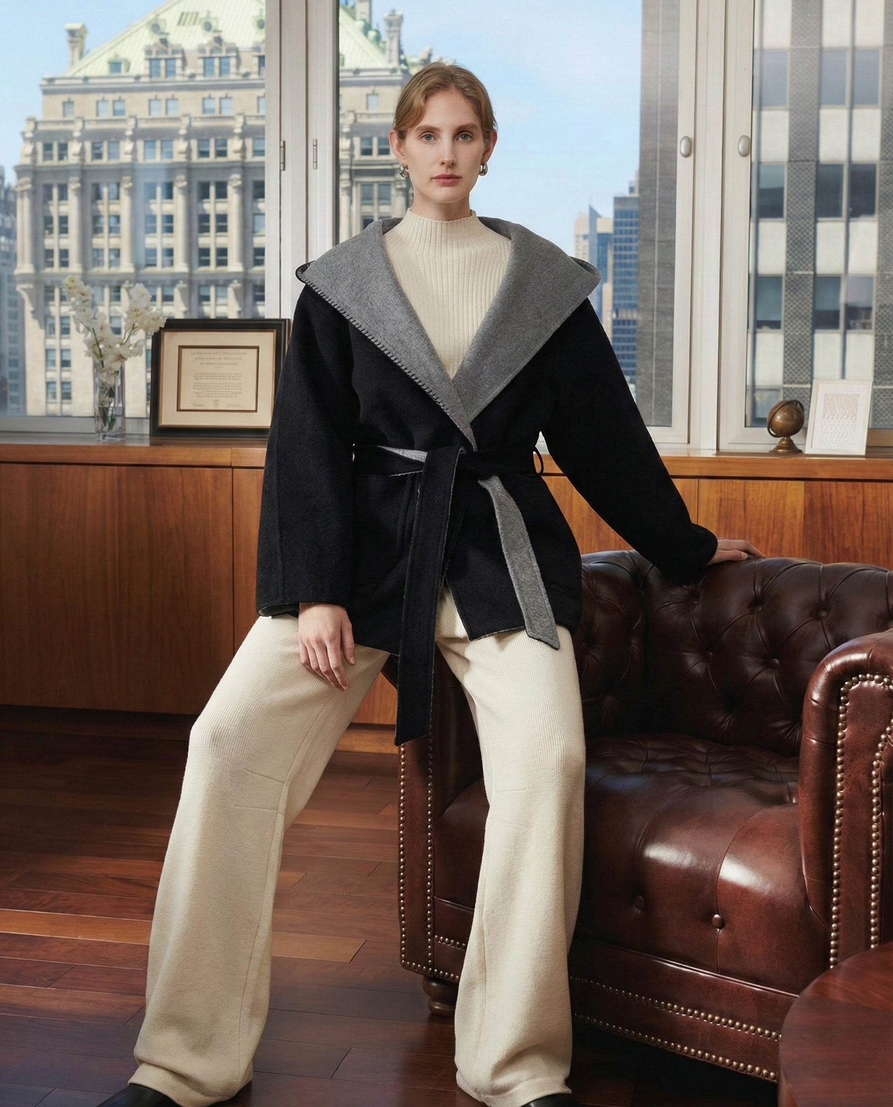 معطف صوفي قابل للعكس - معطف شتوي بغطاء رأس بألوان متداخلة