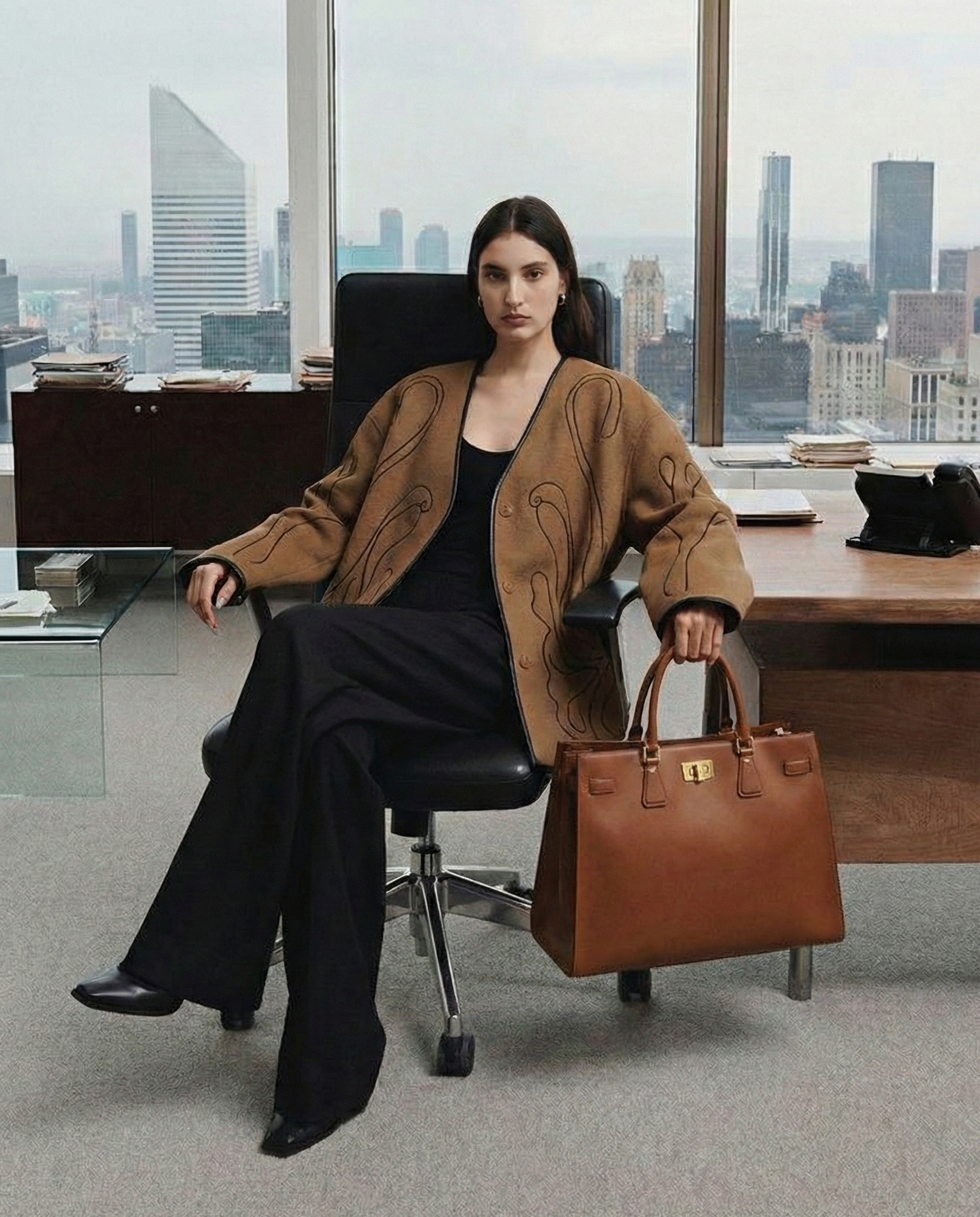 This elegant woolen coat features intricate embroidery and a large V-collar, perfect for adding a touch of sophistication to your winter wardrobe. Its short design and original style make it a versatile piece for both casual and formal occasions.