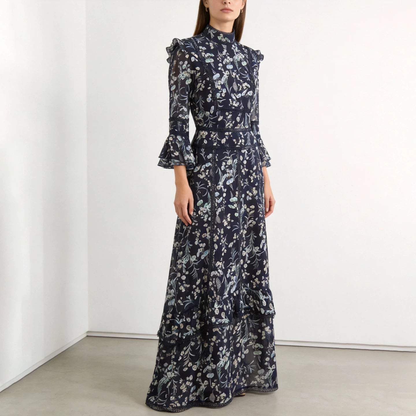 This elegant long dress features a vintage stand collar and intricate lace detailing, perfect for both casual outings and special occasions. The slim fit design enhances your silhouette, while the luxurious mulberry silk fabric adds a touch of sophistication.