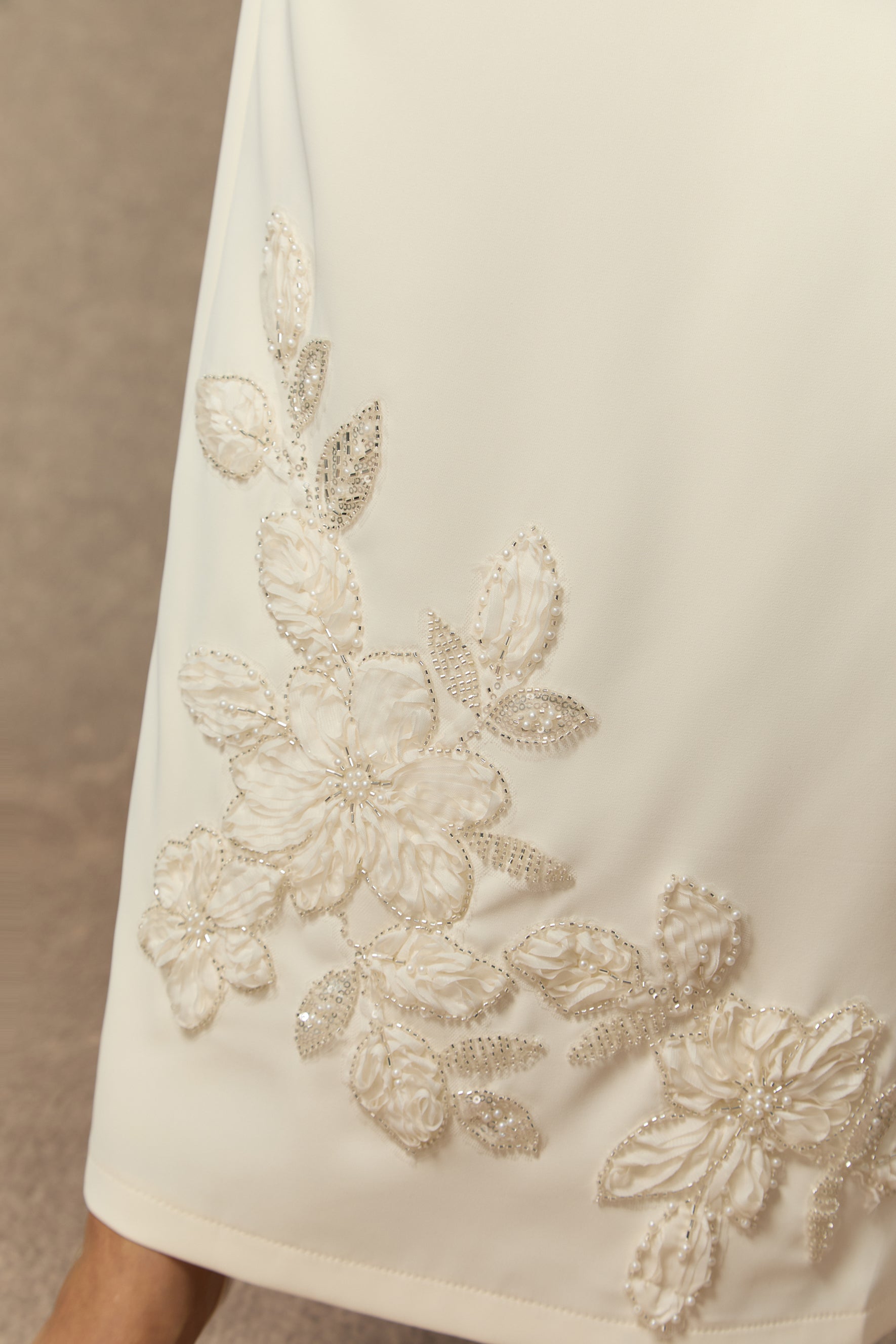 Elevate your wardrobe with the Elegant White Floral Embroidered Skirt Set, a perfect blend of sophistication and style. This set features intricate sequin embroidery and a pleated sleeve design, offering a modern twist on classic elegance.