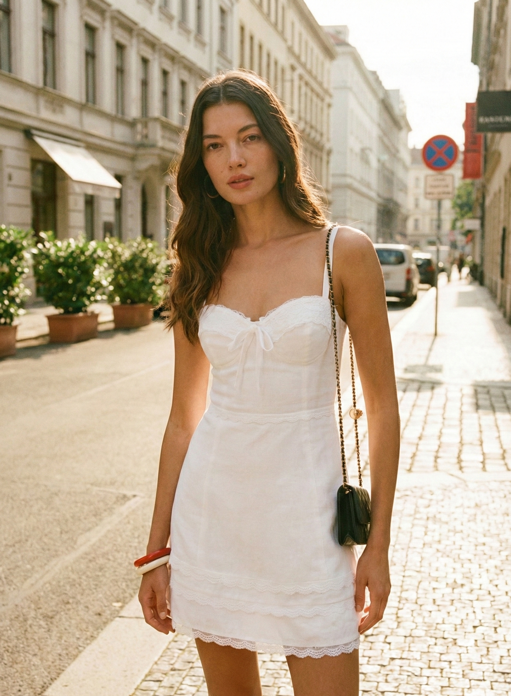 這款優雅的亞麻洋裝採用法式靈感設計,擁有腰身收緊的剪裁與細緻蕾絲邊飾。非常適合夏日場合,這款吊帶裙完美結合時尚與舒適。